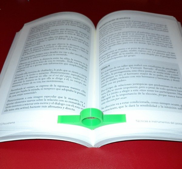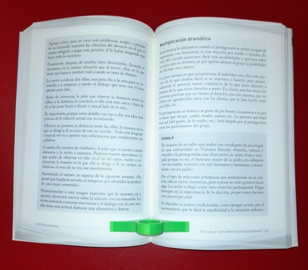 Ayuda a la apertura del libro durante la lectura utilizando una sola mano. El agujero para introducir el dedoes de 2cm de diámetro, el largo total es de 8cm.