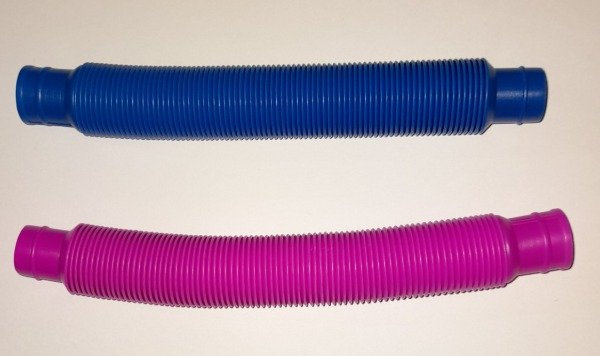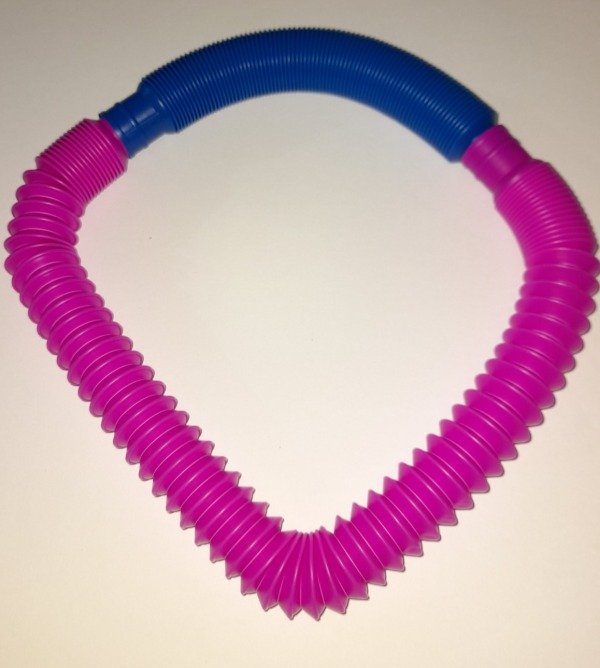 Tubo plásticos flexibles anti estrés, mide 22cm y se estiran hasta 70 cm, se pueden unir sus puntas entre sí o a otro tubo.