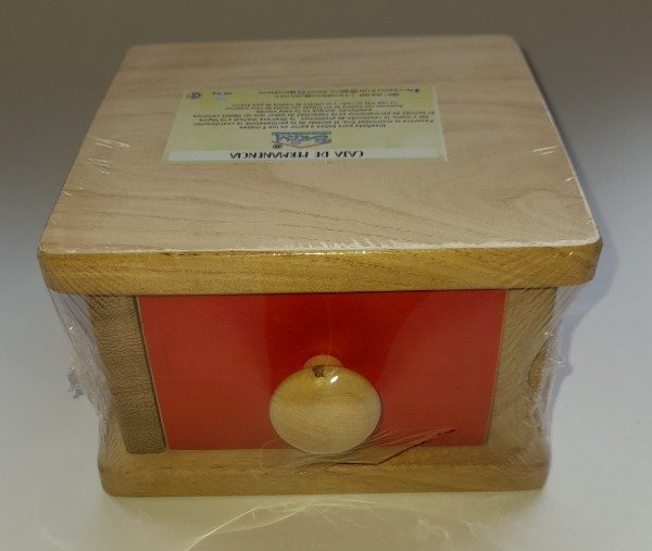 La caja trae un cajón y un cilindro de madera de palo blanco.