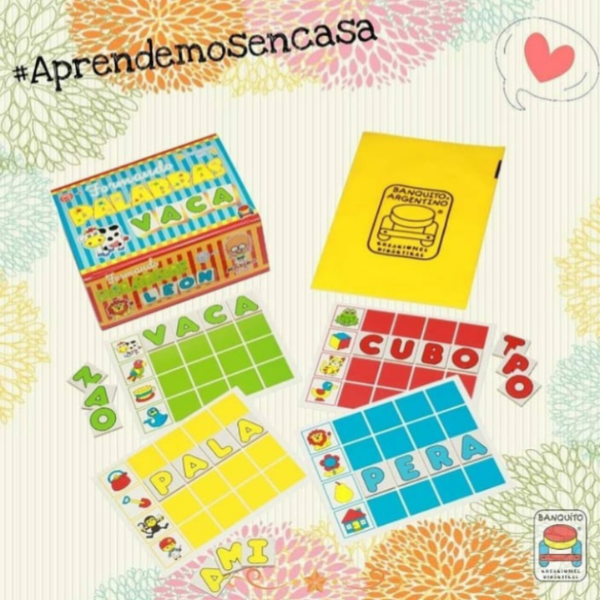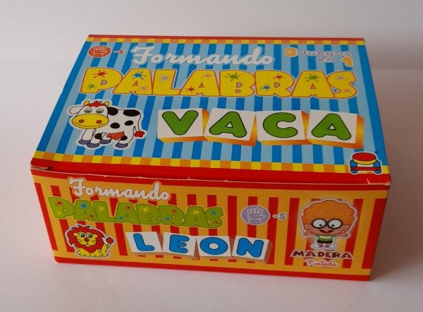 64 fichas de madera pintada de 3,1cm x 3,1cm x0,3cm, 4 cartones, 1 bolsa plástica, 1 reglamento.