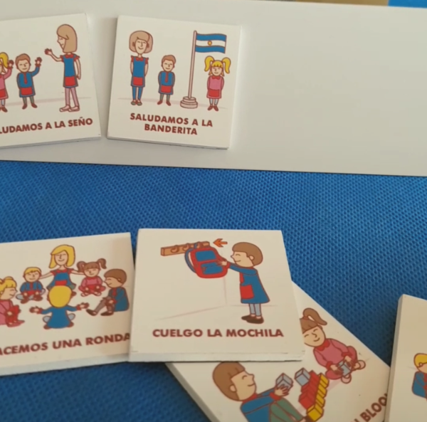 22 pictogramas imantados de 5x5cm, versión unisex de rutinas escolares correspondiente a nivel Jardín