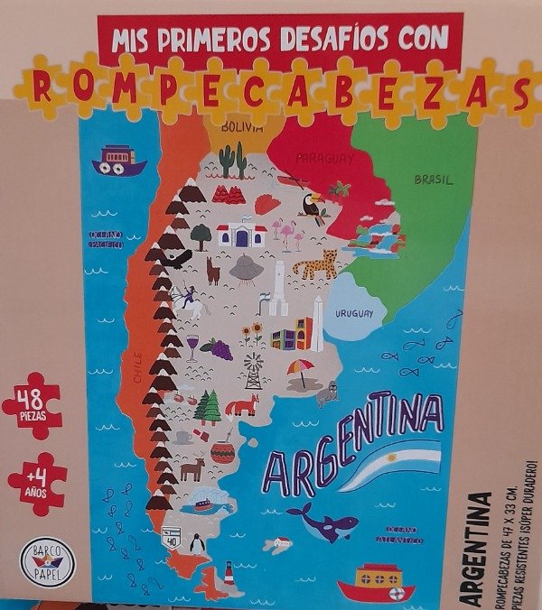 Rompecabezas de 48 piezas con una medida total de 47cm x 33cm. Hecho en cartón montado super resistente y duradero.