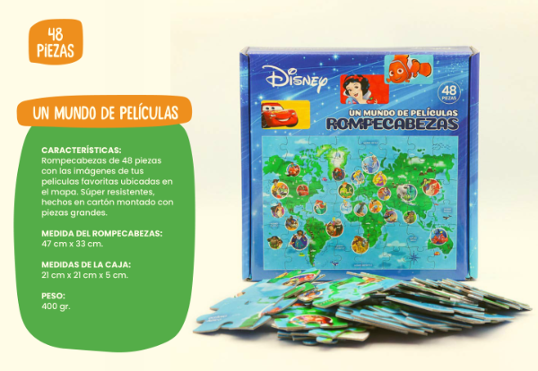 Rompecabezas de 48 piezas de cartón montado super fuertes y resistentes para un mayor durabilidad, con una medida total de 47x33 cm.
