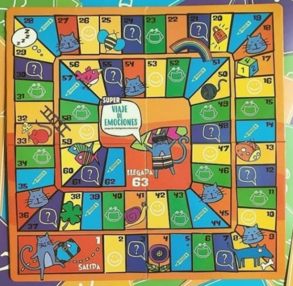 Es un juego para hablar de lo que nos pasa. Contiene un tablero dónde el recorrido es un viaje que se hace con todos los participantes y el Gato Bigotes como acompañante. Al caer en los distintos casilleros se levanta la tarjeta que los invita a expresar sus emociones de diferentes maneras.