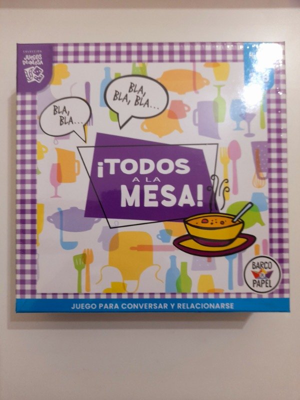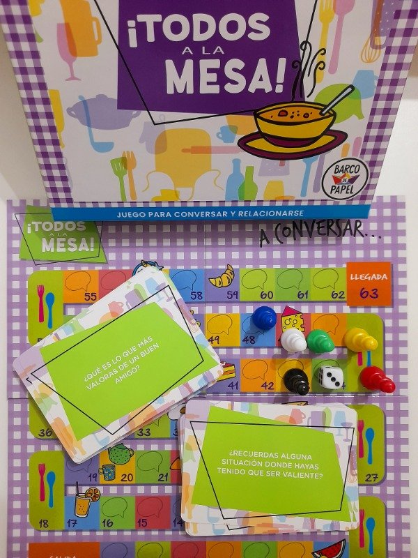 Todos a la mesa es un juego emocional, de conversación y de autoexpresión para todas las edades. Es una ocasión para compartir los pensamientos, expresar las emociones y afianzar la unión y el vínculo entre los jugadores. Contiene un tablero de cartón montado, y a medida que se va avanzando cada casillero invita a todos los jugadores a charlar sobre distintas temáticas. Contiene 50 tarjetas con