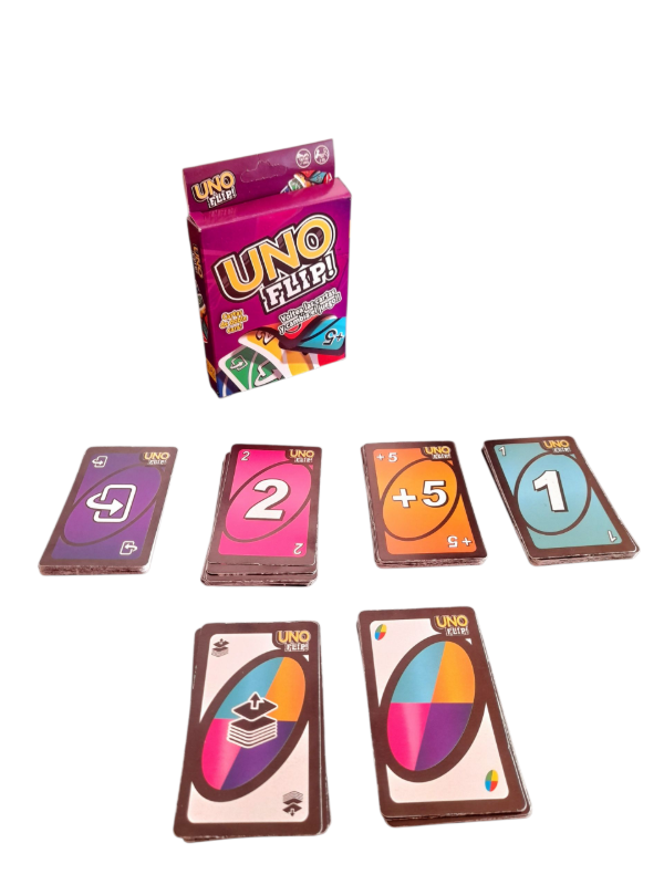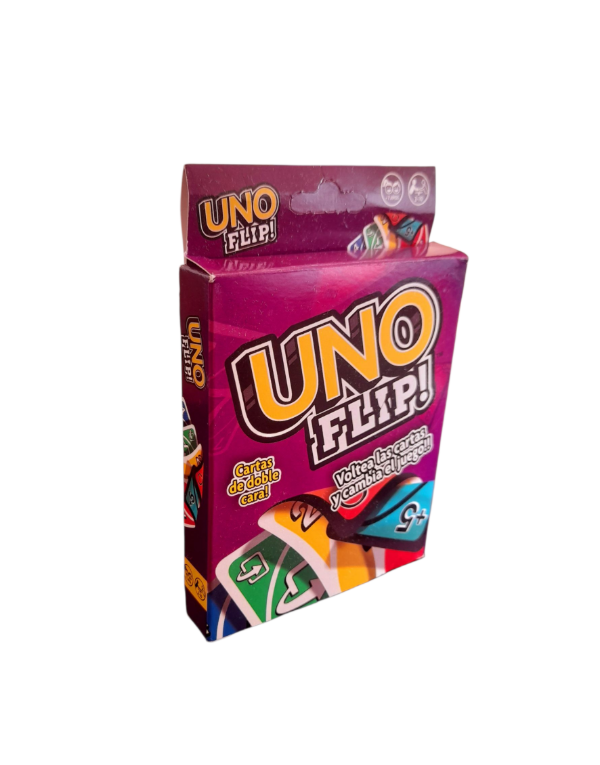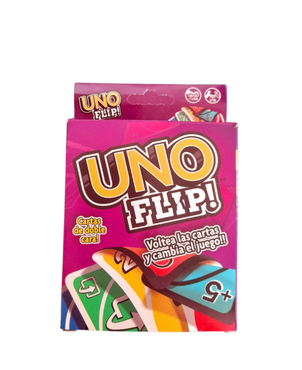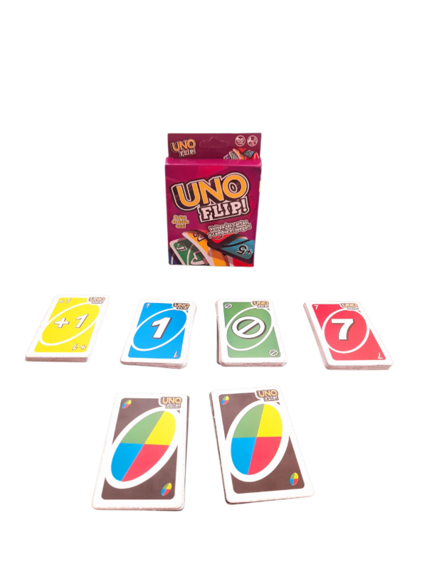 Misma dinámica de juego de descarte que el UNO tradicional, pero éste es más dinámico y hay que estar más atento y concentrado porque ambas caras de las cartas tienen imágenes.