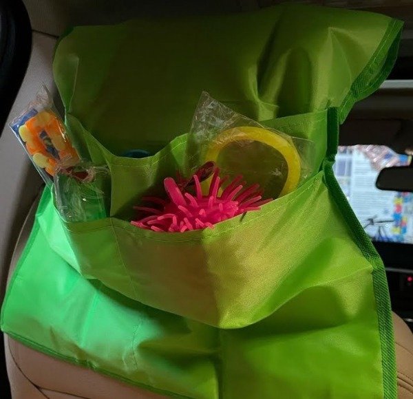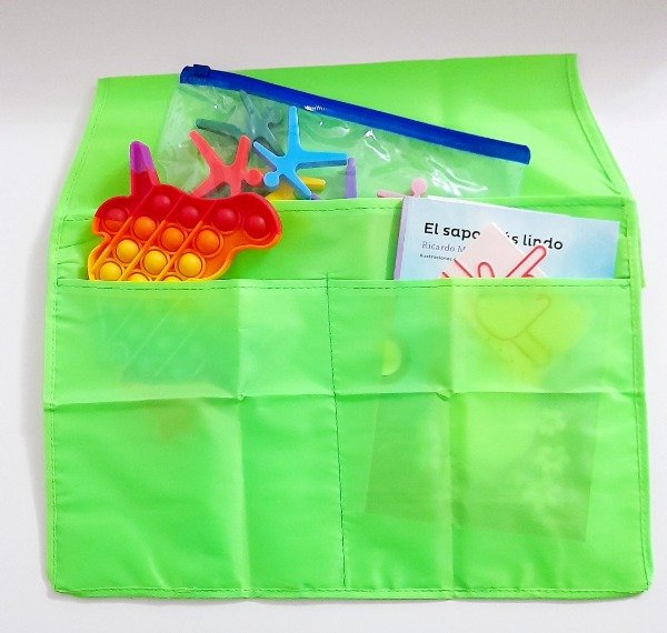 Organizador para siila de lona con tres bolsillos para útiles escolares, juguetes de descarga y todo lo que quieras guardar.